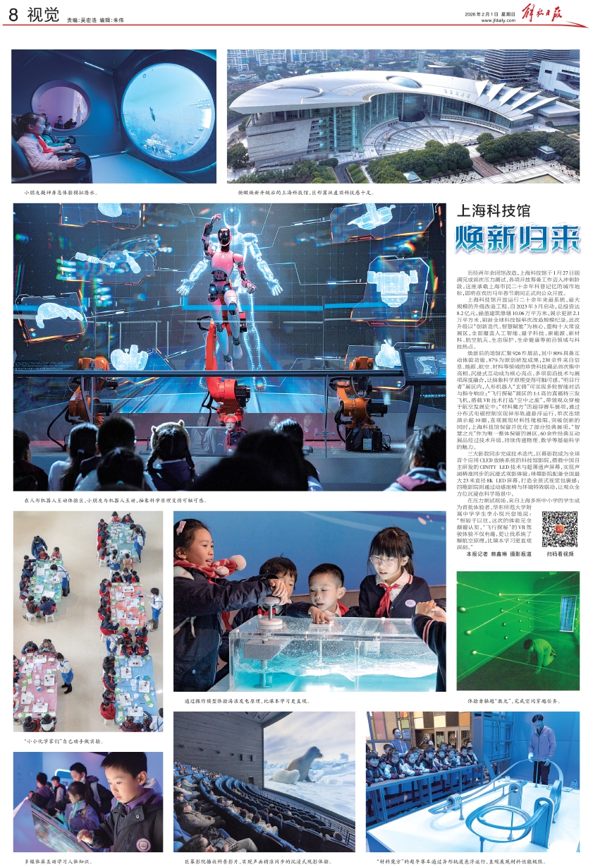 上海科技馆开放运行二十余年来最系统、最大规模的升级改造工程,自2023年3月启动,总投资达8.2亿元,涵盖建筑修缮10.06万平方米、展示更新2.1万平方米,刷新全球科技馆单次改造规模纪录。此次升级以“创新迭代、智慧赋能”为核心,重构十大常设展区,全面覆盖人工智能、量子科技、新能源、新材料、航空航天、生态保护、生命健康等前沿领域与科技热点。
