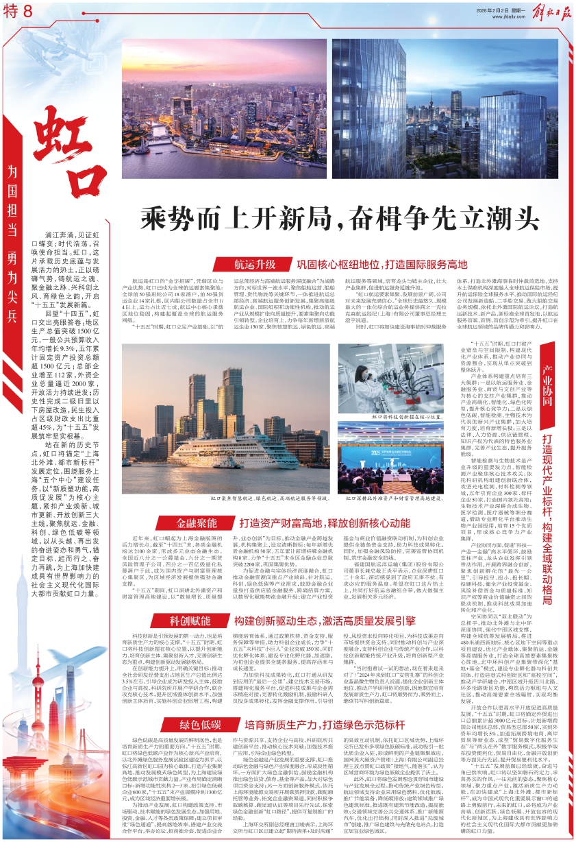 “十五五”时期,虹口打破产业壁垒与空间限制,构建现代化产业体系,推动产业协同与资源整合,实现从单点突破到整体跃升。