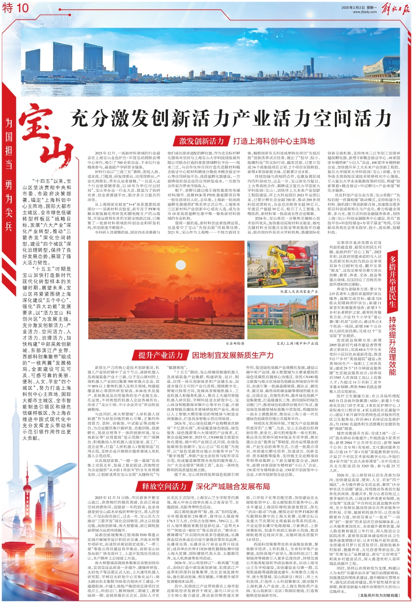 2026年,宝山将坚持以“一核两翼”为重点,加快打造中部吴淞创新城、东部滨江产业带和西部科创集聚带,优化区域发展布局,强化联动发展、相互赋能,不断提升城市发展能级和品质。