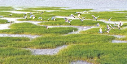 如今,崇明占全球种群数量1%以上的水鸟物种数稳定保持在12种以上,鸟类多达380多种,全区栖息有东方白鹳、黑鹳、中华鲟、江豚等珍稀濒危物种,扬子鳄、獐、麋鹿等极小种群也得到逐步恢复。