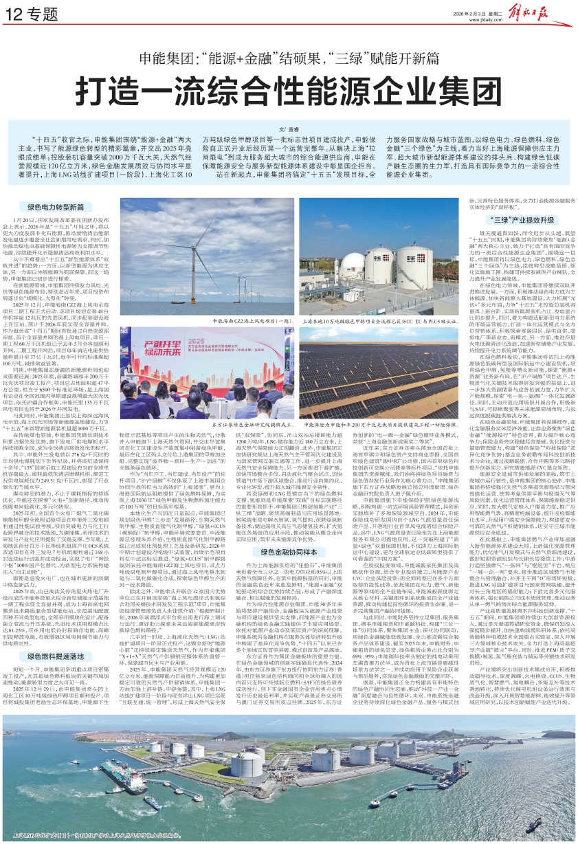 “十四五”收官之际,申能集团围绕“能源+金融”两大主业,书写了能源绿色转型的精彩篇章,并交出2025年亮眼成绩单:控股装机容量突破2000万千瓦大关,天然气经营规模近120亿立方米,绿色金融发展质效与协同水平显著提升,上海LNG站线扩建项目(一阶段)、上海化工区10万吨级绿色甲醇项目等一批标志性项目建成投产,申能保险自正式开业后经历第一个运营完整年。从解决上海“拉闸限电”到成为服务超大城市的综合能源供应商,申能在保障能源安全与服务新型能源体系建设中彰显国企担当。