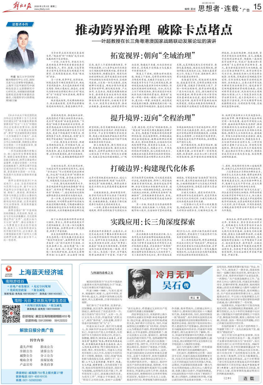 面向未来,跨界治理作为一种突破边界、重构体系、整合资源的治理方式,其战略意义与现实紧迫性日益凸显。“十五五”时期是基本实现社会主义现代化夯实基础、全面发力的关键时期,需要大力推动跨界治理,打通要素流动渠道,构筑新的治理模式,坚决破除阻碍全国统一大市场建设卡点堵点。通过拓宽视界、提升境界、打破边界,在新发展格局中构建高效能跨界治理体系,为推进中国式现代化提供坚实保障,为全球治理变革贡献中国智慧、中国方案。