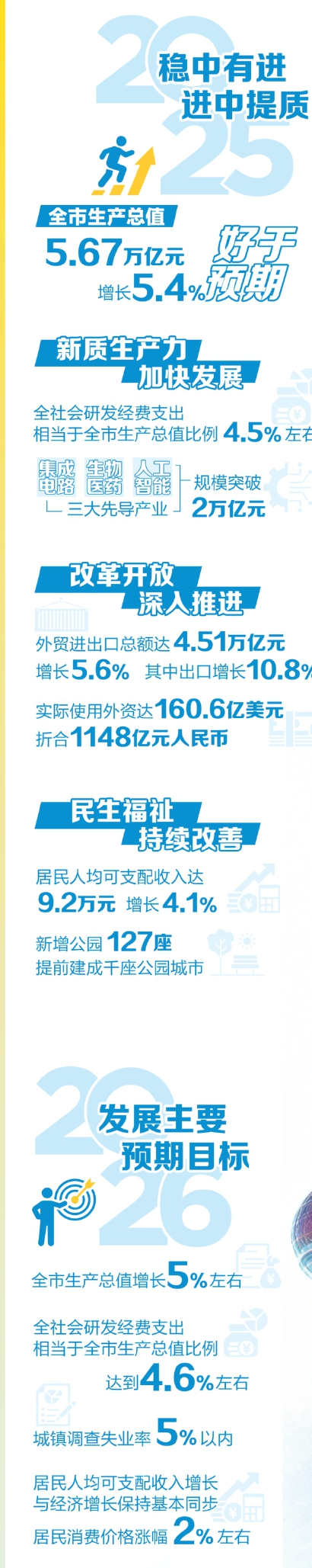 推进智慧城市建设。打造新型基础设施,加快建设全球“双万兆”城市,持续提升数字公共服务能力。