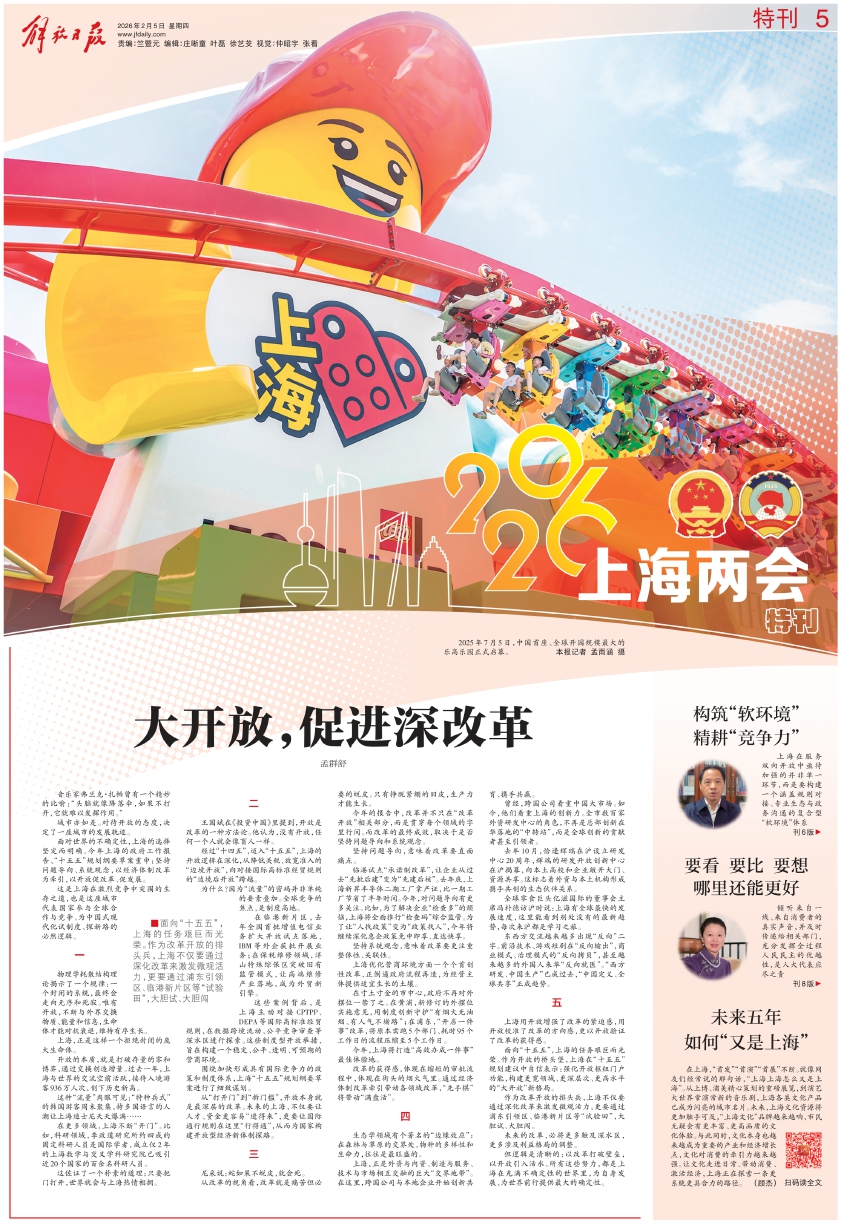 面对世界的不确定性,上海的选择坚定而明确。今年上海的政府工作报告、“十五五”规划纲要草案重申:坚持问题导向、系统观念,以经济体制改革为牵引,以开放促改革、促发展。
