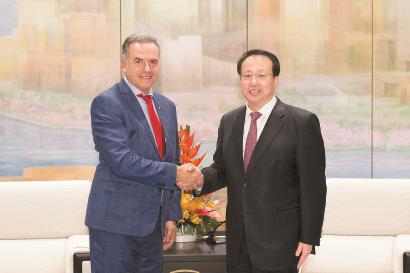龚正会见乌拉圭总统奥尔西。 本报记者 张春海 摄
