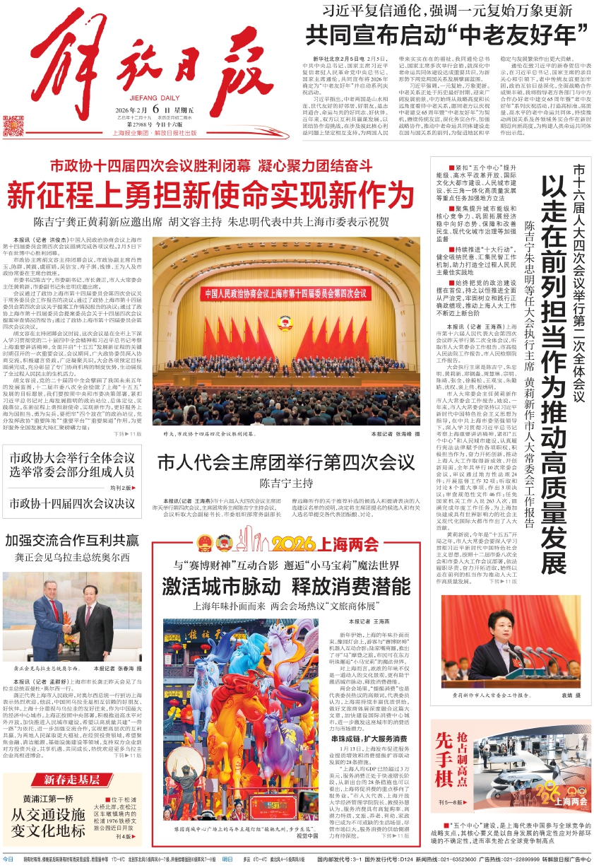 龚正代表上海市人民政府,对奥尔西总统一行到访上海表示热烈欢迎。他说,中国同乌拉圭是相互信赖的好朋友、好伙伴。上海十分重视与乌拉圭的友好往来。作为中国最大的经济中心城市,上海正按照中央部署,积极推进高水平对外开放,加快推进人民城市建设。希望以高质量共建“一带一路”为依托,进一步加强交流合作,实现更高层次的互利共赢,为两地人民谋取更大福祉。在经贸投资领域,希望聚焦金融、清洁能源、基础设施建设等领域,支持双方企业到对方投资兴业,共享机遇、共同成长,热忱欢迎更多乌拉圭企业亮相进博会。 下转 11版(上接第1版)在港口合作领域,希望围绕智慧航运、绿色航运、港口规划建设等方面深化务实合作、加强互联互通,促进双方经济高质量发展。在人文领域,希望以中国对乌拉圭实行免签为契机,深化双方在文化、体育、青少年等领域的交流合作,促进民众加深彼此了解,增进两地友谊。