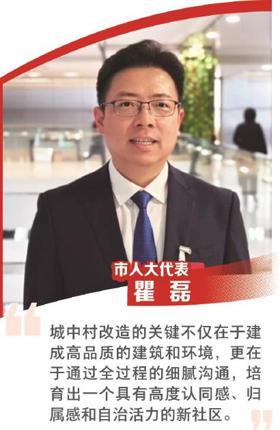挑战另一方面来自社会网络的维系与重塑。“居民舍不得老街坊们和熟悉的生活场景。”瞿磊在履职调研和日常工作中发现,无论是城中村改造还是旧住房的改造、征收,让居民“搬上楼”只是第一步,更重要的是在新社区中,促进新的社会联结的形成,保留地方的集体记忆和文化认同。
