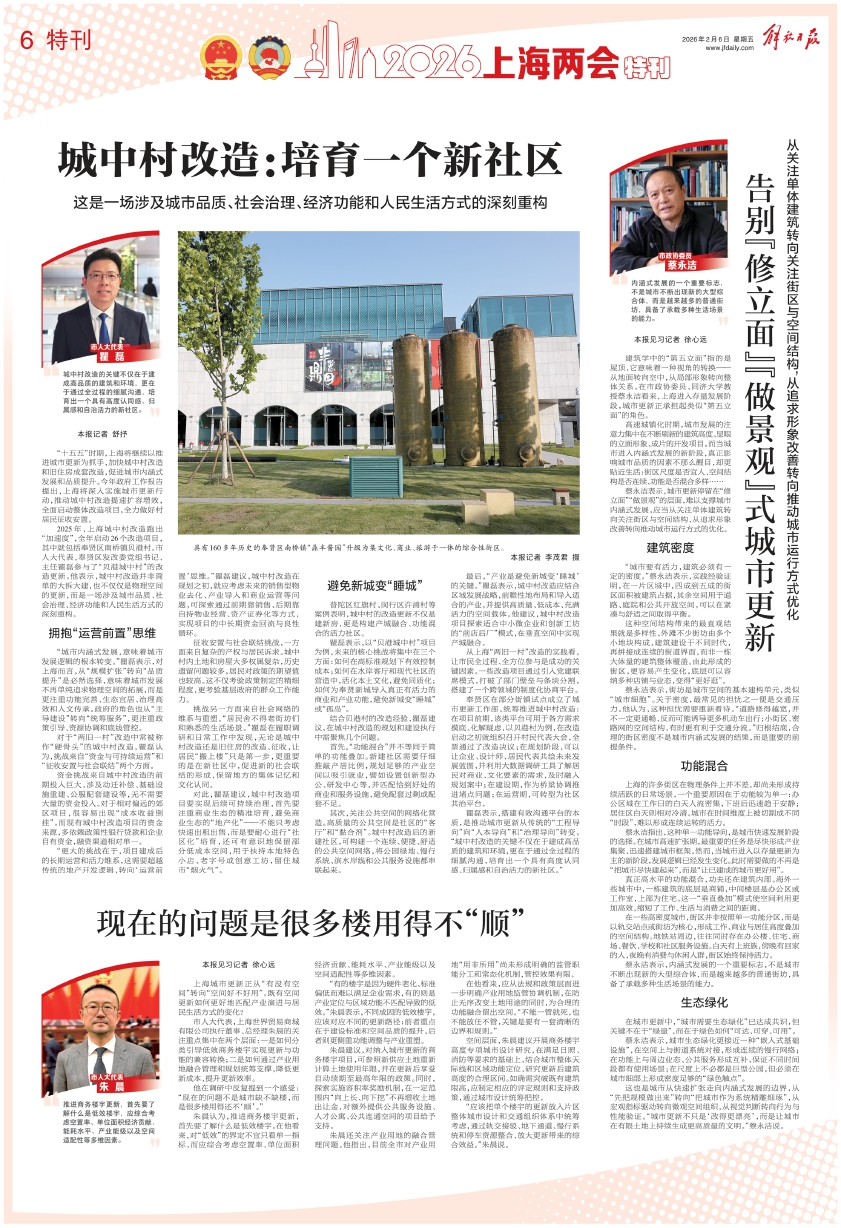 2025年,上海城中村改造跑出“加速度”,全年启动26个改造项目,其中就包括奉贤区南桥镇贝港村。市人大代表,奉贤区发改委党组书记、主任瞿磊参与了“贝港城中村”的改造更新。他表示,城中村改造并非简单的大拆大建,也不仅仅是物理空间的更新,而是一场涉及城市品质、社会治理、经济功能和人民生活方式的深刻重构。