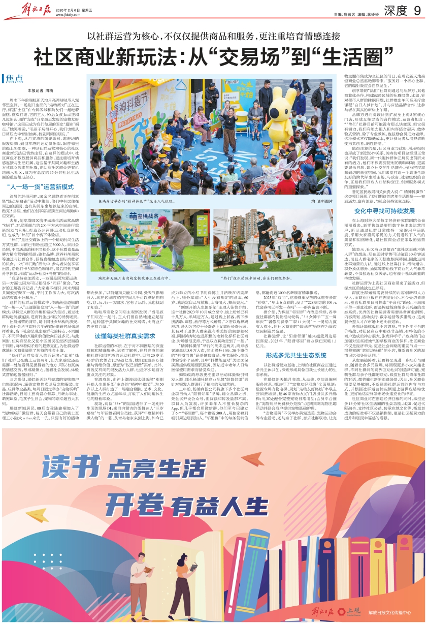 在上海,从月亮湾的萌宠派对、鸿寿坊的银发街舞,到创享塔的运动俱乐部、阳普邻里的线上邻里圈,一种以社群运营为核心的社区商业新玩法已悄然出现。在这样的模式中,社区商业不仅仅提供商品和服务,更注重培育情感连接与生活归属。这些基于共同兴趣和生活方式建立起来的社群,正助推社区商业更有机地融入社区,成为有温度的15分钟社区生活圈的重要组成部分。