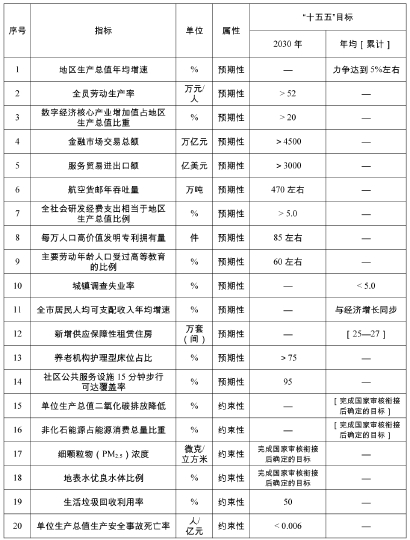 ——高质量发展取得显著成效。地区生产总值年均增速力争达到5%左右,全员劳动生产率超过52万元/人,制造业保持合理比重,产业引领力、竞争力持续提高,服务业创新发展取得重大进展,现代乡村产业体系更为健全,新质生产力加快培育,国际消费中心城市建设取得突破,内需拉动经济增长主动力作用持续增强。