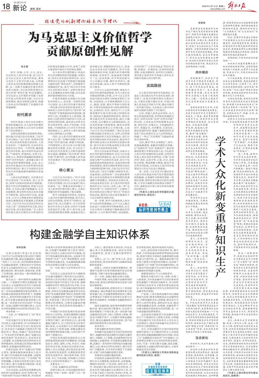 逐步走出一条中国特色金融发展之路,一个重要的学理性支撑就是“把马克思主义金融理论同当代中国具体实际相结合、同中华优秀传统文化相结合”。在科技浪潮重塑全球经济格局、中国金融实践深度变革的背景下,构建植根本土、面向世界的金融学自主知识体系,成为支撑金融强国建设的核心命题。这一体系绝非封闭自洽的“学术盆景”,而是以破解中国问题为核心、以回应世界级难题为目标的知识创造工程。