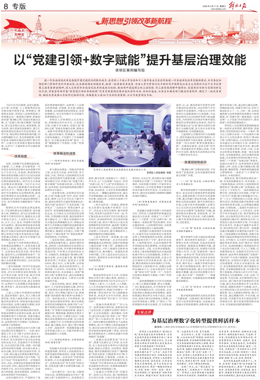 崇明区人民检察院以“数ZHI云帆”推动党建与数字检察融合,实质是在城市基层治理链条中嵌入“法治监督+数据智能”的能力单元,为上海推进治理数字化转型尤其是基层治理数字化转型提供了鲜活样本。