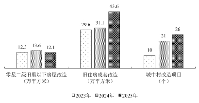 民心工程和民生实事全面完成。19项民心工程三年行动计划和34项为民办实事项目年度任务如期完成。全年新增养老床位3852张、改建认知障碍照护床位3326张,建成社区长者食堂57个、家门口养老服务站336个、乡村长者照护之家30个,新增公办幼儿园托班托额3630个,推进264个社区托育“宝宝屋”扩优提质,实现中小学教室加装空调全覆盖。全年新建社区市民健身中心47个,新建改建市民运动球场169片、市民健身步道54条。完善“一张床、一间房、一套房”的多层次租赁住房供应体系,新增建设筹措保障性租赁住房7.4万套(间),筹措供应“新时代城市建设者管理者之家”床位3.2万张。高质量实施城市更新(见图2),新启动城中村改造项目26个,历史性完成中心城区零星二级旧里以下房屋改造,“拎马桶”问题得到总体解决,完成旧住房成套改造43.6万平方米、老旧小区改造1526万平方米,推动既有多层住宅加装电梯3295台。乡村振兴战略深入实施,建成高标准农田8.9万亩,建成乡村振兴示范村15个、“美丽庭院”8.2万户,建设“五好两宜”和美乡村片区12个,1.2万户相对集中居住农户入住新居。