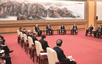 2月11日,习近平、王沪宁、蔡奇、丁薛祥等在北京人民大会堂同党外人士欢聚一堂,共迎佳节。 新华社记者 李响 摄
