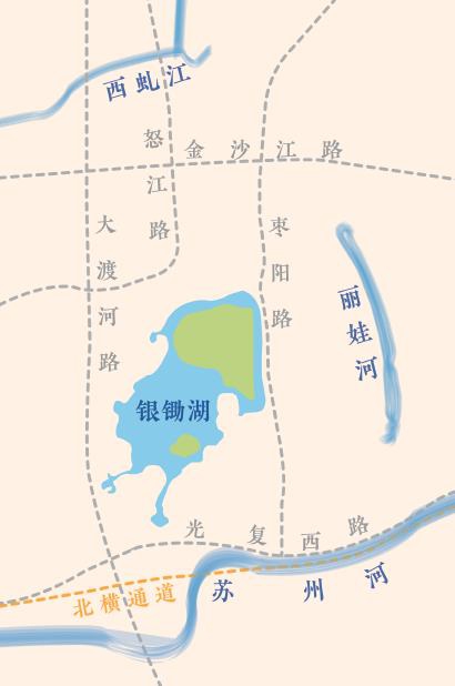 银锄湖和丽娃河的位置示意图。