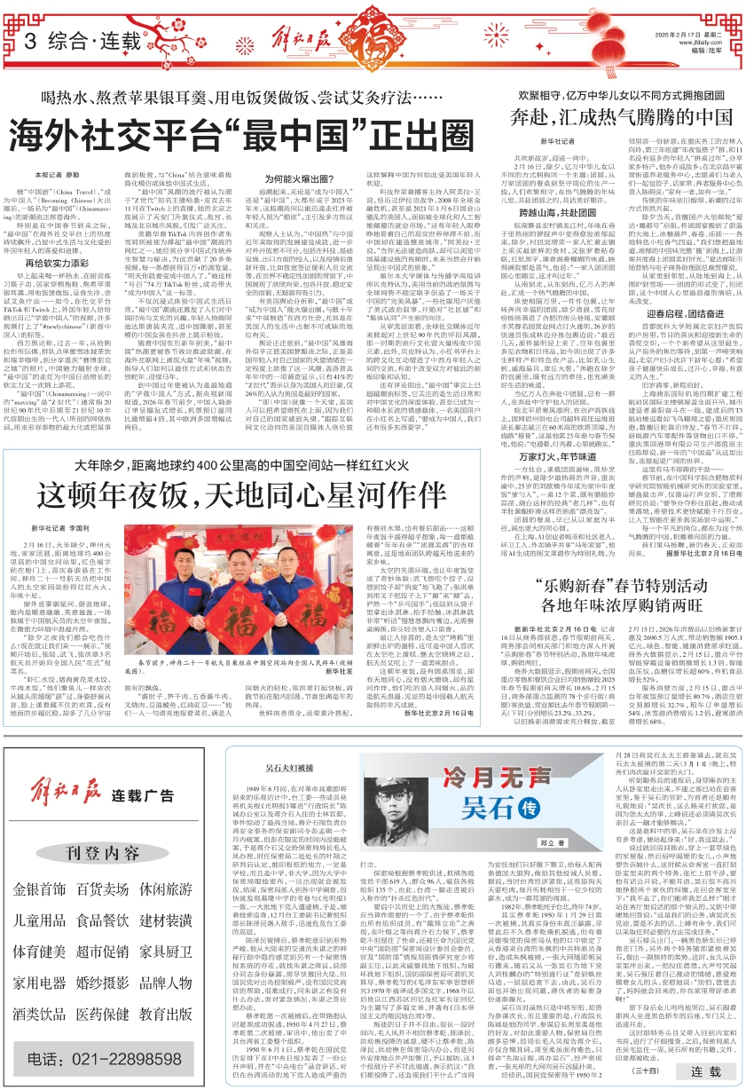 特别是在中国春节到来之际,“最中国”在海外社交平台上的热度持续飙升,凸显中式生活与文化受到外国年轻人的喜爱和追捧。