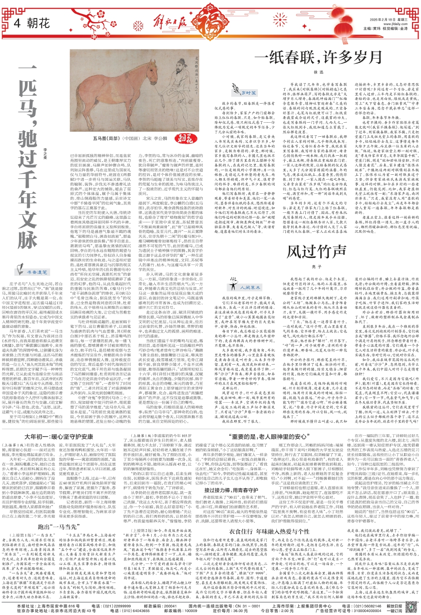 马年新春,人们喜欢说“一马当先”作为祝福,有文章认为该词出自《水浒传》。而我却愿意将源头追溯至《离骚》,那句“乘骐骥以驰骋兮,来吾道夫先路”的深情呼唤,让骐骥化身为求索路上的先驱与同道。这匹马的眼眸映照着星辉,四蹄踏动着风云,承载的是一位士人“虽九死其犹未悔”的纯粹理想。屈原的文字赋予马一种神性的光辉,它从此成为连接尘世与高洁理想的桥梁。数百年后,汉武帝的《西极天马歌》以“天马来兮从西极,经万里兮归有德”的雄浑之句,将马塑造成帝国受命于天的象征。这隐约预示着马的形象将在个人抒怀与集体叙事之间,展开漫长的角力与交融。《说文解字》讲:“马:怒也。武也。”这怒,这武,这霸气十足,或能为汉武帝之注。