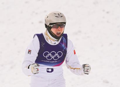 2月20日,王心迪在比赛后庆祝夺冠。 新华社记者 邬惠我 摄