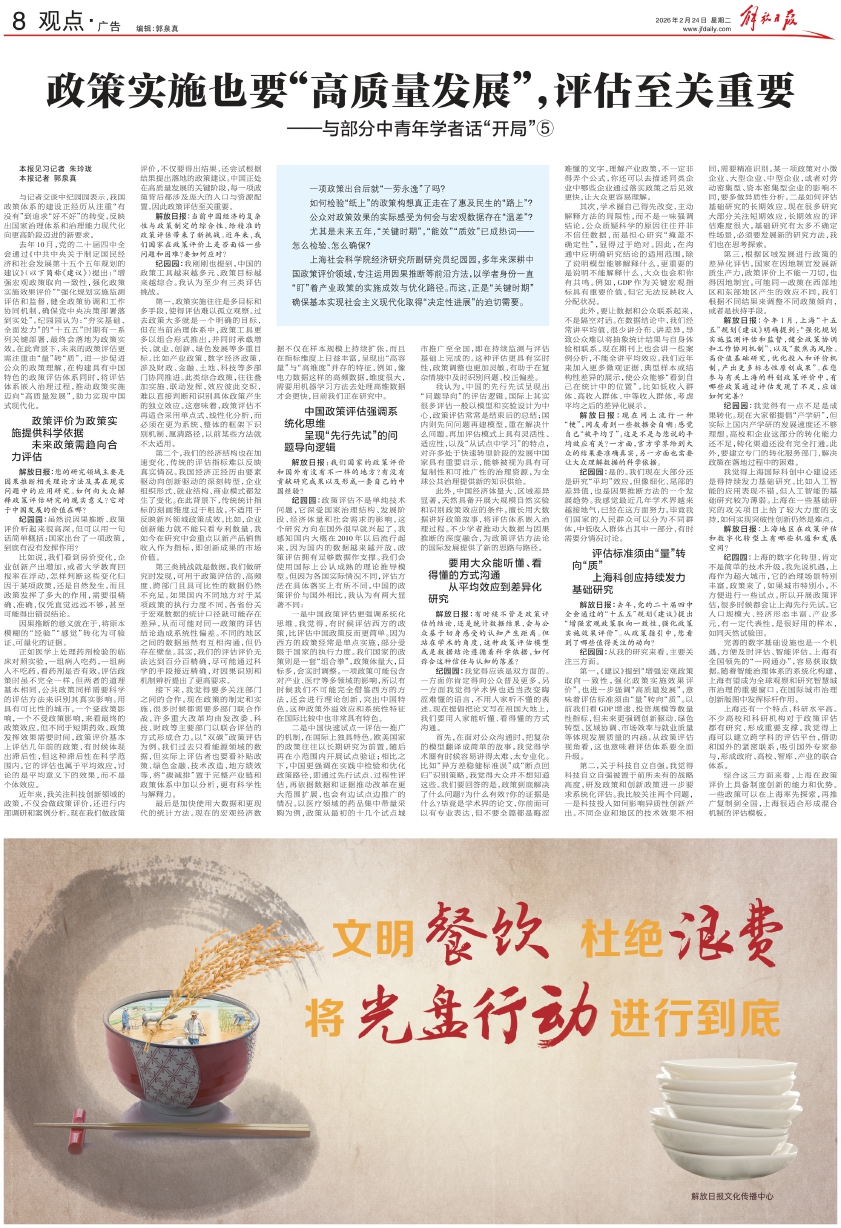 解放日报:当前中国经济的复杂性与政策制定的综合性,给精准的政策评估带来了新挑战。近年来,我们国家在政策评价上是否面临一些问题和困难?要如何应对?