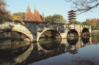 水波粼粼、长桥塔影的独特景观,被誉为“三吴绝景”。近千年来,数百位历代文化名人都以到此一游,吟诗咏词,泼墨作画为荣,成为诗画的胜地、文化的高地。
