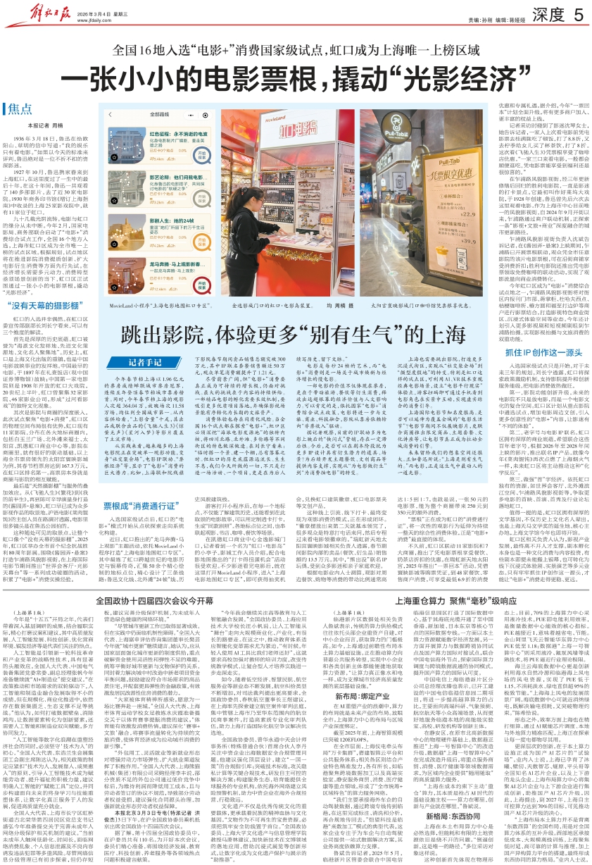 入选国家级试点只是开始。对于未来三年的规划,刘长宁透露,虹口将探索政策激励机制,支持影院提升和创新服务能级,把电影消费做热做旺。