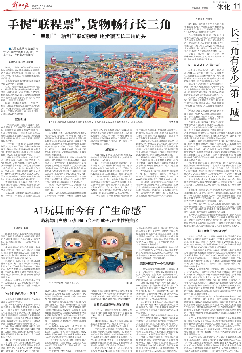 在长三角,以数据跨域互联互通为基础,“一单制”“一箱制”正在更多地区、更多领域成为现实。