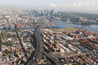 这是2月26日在阿根廷阿韦亚内达航拍的港口和城市。 新华社发 -