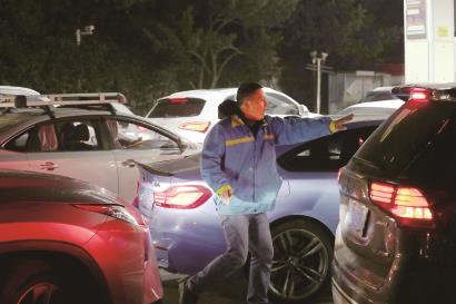 昨天,在中国石油加油站(海宁路站),工作人员指挥车辆进站加油。 本报记者 蒋迪雯 摄