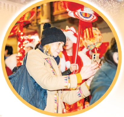 豫园灯会也是跨越国界的文化磁场。来自全球各地的宾客循着年味而来,在灯火流转间沉浸式触摸中华文化的肌理,用镜头定格美好、用互动传递热爱。