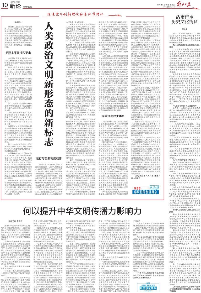 总之,全过程人民民主不仅属于中国,而且属于人类;不仅存在于当下,而且发展于未来。没有人类社会的现代化发展大潮推动,中华五千多年的文明就不可能从古代迈向现代;没有世界社会主义的发展,中国也不可能选择社会主义、创建人民民主,进而发展全过程人民民主。中国式现代化是前所未有的伟大实践,必然会打造新基础、开拓新空间、提出新要求、提供新经验,不断推进国家治理体系和治理能力现代化,在与时俱进的理论创新、实践创新、制度创新中不断丰富和发展全过程人民民主的理论体系、制度体系、运行体系和规范体系,使其成为人类政治文明新形态的新标志。