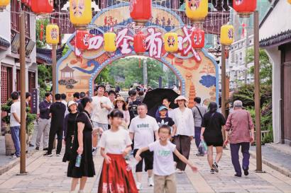 市集聚拢烟火气,让消费活力充分释放。新春市集遍布古镇街巷,非遗手作、文创好物、特色小吃一应俱全,为市民游客打造“逛吃玩赏购”一站式体验。创新探索“非遗+潮流”玩法,联动热门手游推出打卡活动,搭配COSER巡游、非遗课堂、套色盖章等互动体验,串联古镇特色点位,引导年轻游客深度探访。