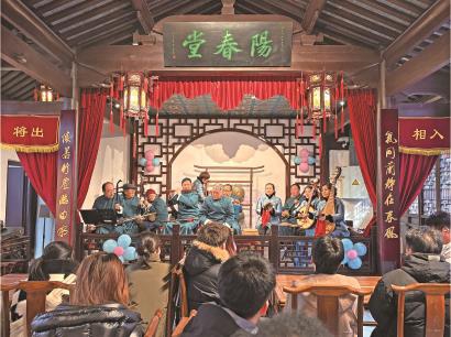 文化同样浸润在居民日常生活中。3月8日,“泗泾有戏·等你入戏”专场演出暨《走自己的路——赵志刚从艺50周年评论集》新书分享会举行。活动地点从社区文化活动中心延伸至赵氏工坊,寓意着艺术“从社区中来,到本源中去”的循环。如今,南村讲堂、古镇戏台上好戏连台,居民在家门口就能享受到高品质的文化大餐。