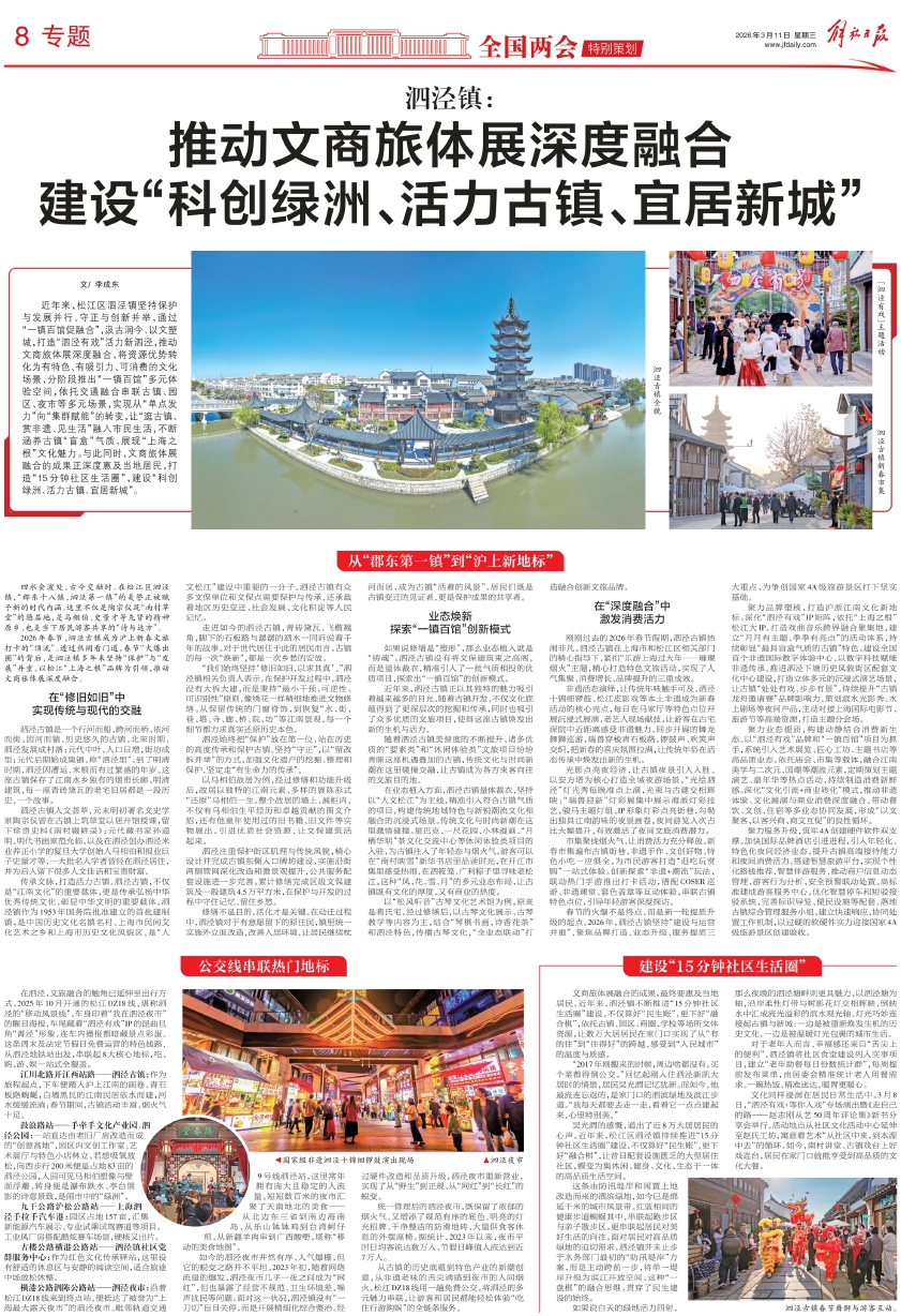 2026年春节,泗泾古镇成为沪上新春文旅打卡的“顶流”。透过热闹看门道,春节“火爆出圈”的背后,是泗泾镇多年来坚持“保护”与“发展”并重,以松江“上海之根”品牌为引领,推动文商旅体展深度融合。