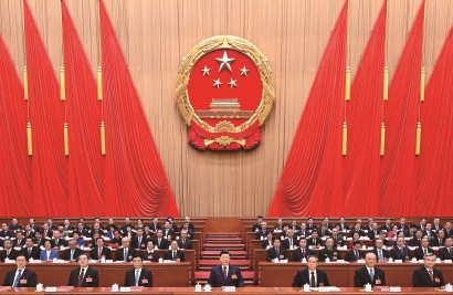 3月12日下午,第十四届全国人民代表大会第四次会议在北京人民大会堂闭幕。党和国家领导人习近平、李强、王沪宁、蔡奇、丁薛祥、李希、韩正等在主席台就座。 新华社记者 谢环驰 摄 -