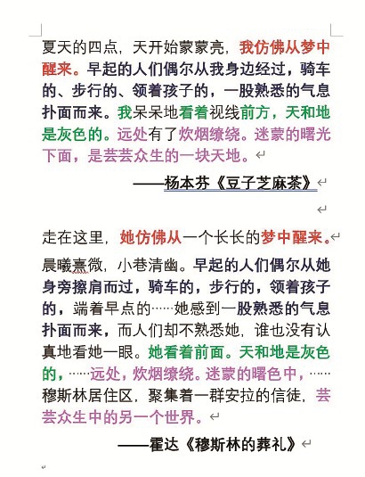 他注册了小红书账号,起名“抒情的森林”,发帖中把相似度高的文字、段落标红,以对比图的形式指出不同作家作品中的“异曲同工”之处,即作家“基本照搬”前人作品语句的地方。