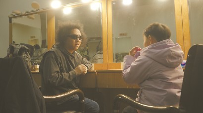 那天,由上海市眼病防治中心牵线搭桥,摄制组带着悦悦,专程从徐州赶到南通,见到了黑灯。在狭小的后台空间里,摄像头对准他们,记录着这场特别的相遇。起初,大家只安排了一场无剧本的见面,没人知道,一个视障脱口秀演员与一个吹陶笛的视障小女孩,能碰撞出什么火花。