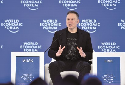 马斯克在瑞士达沃斯举办的世界经济论坛2026年年会上发言。 新华社发