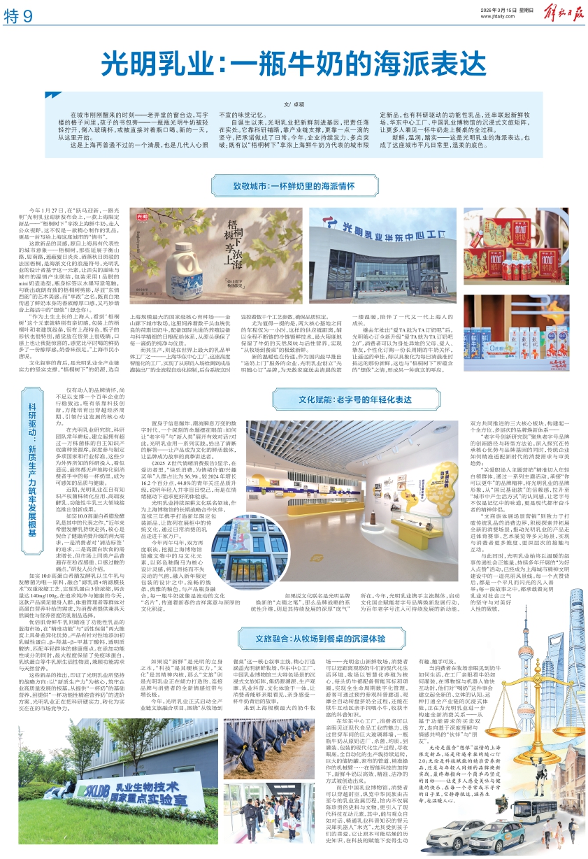 自诞生以来,光明乳业把新鲜刻进基因,把责任落在实处。它靠科研铺路,靠产业链支撑,更靠一点一滴的坚守,把承诺做成了日常。今年,企业持续发力、多点突破:既有以“梧桐树下”享浓上海鲜牛奶为代表的城市限定新品,也有科研驱动的功能性乳品,还串联起新鲜牧场、华东中心工厂、中国乳业博物馆的沉浸式文旅矩阵,让更多人看见一杯牛奶走上餐桌的全过程。