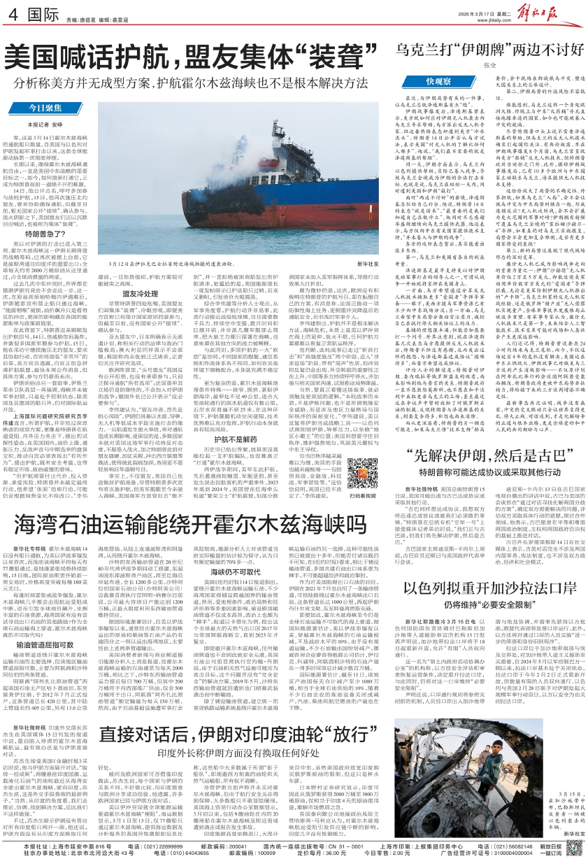 即便如此,霍尔木兹海峡至今仍是全球石油运输不可取代的海上要道。据国际能源署估计,美以伊战事爆发以来,穿越霍尔木兹海峡的石油运输锐减,不及战前水平的10%。由于没有渠道运输,不少石油输出国纷纷减产。挪威咨询企业睿咨得能源公司估计,伊拉克、科威特、阿联酋和沙特的石油产量在一周多时间里总计减少数百万桶。