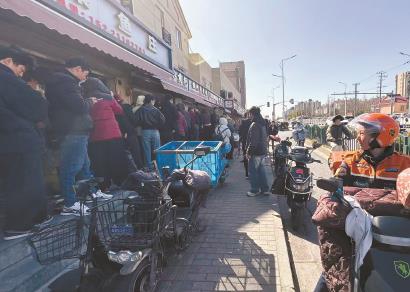 3月10日上午,水煎包店门前排起长队。 杨书源 摄
