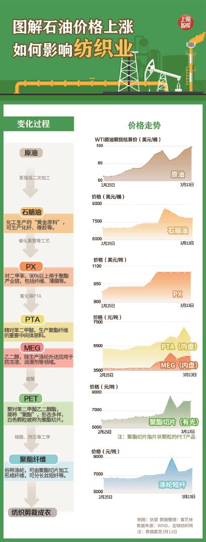 茅骥刚认为,过往涤纶丝等化纤原料价格,也时常会跟随国际原油价格波动。但是此次波动如此剧烈且居高不下,实属罕见。这主要是由于中东战事发生后,霍尔木兹海峡货运不畅,直接影响包括我国在内的各国石油库存。因此,部分原油会优先保障成品油炼化,而涤纶等副产品产量则可能被相应压缩。