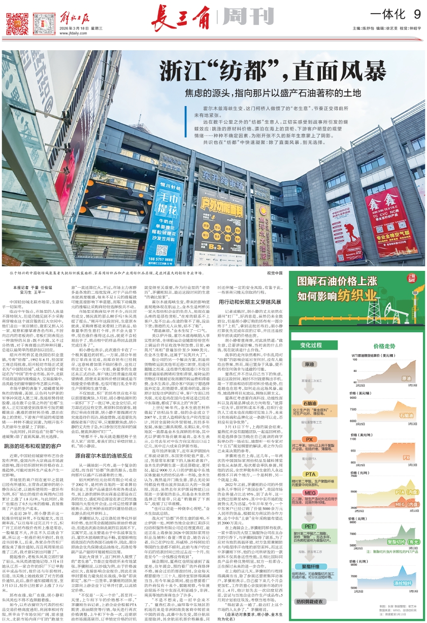 “不仅是‘一天一个价’,甚至同一天里,上午和下午的价格都不一样。”茅骥刚告诉记者,上游企业会根据PTA期货、原油期货等行情,每天进行两次价格调整,上午和下午各一次。近期原油市场震荡剧烈,订单锁定价格的时机就变得至关重要。作为行业里的“老资历”,茅骥刚坦言,最近这段时间的生意“的确比较累”。