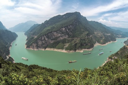 船舶行驶在三峡大坝上游湖北省宜昌市秭归县水域。 新华社 发 -