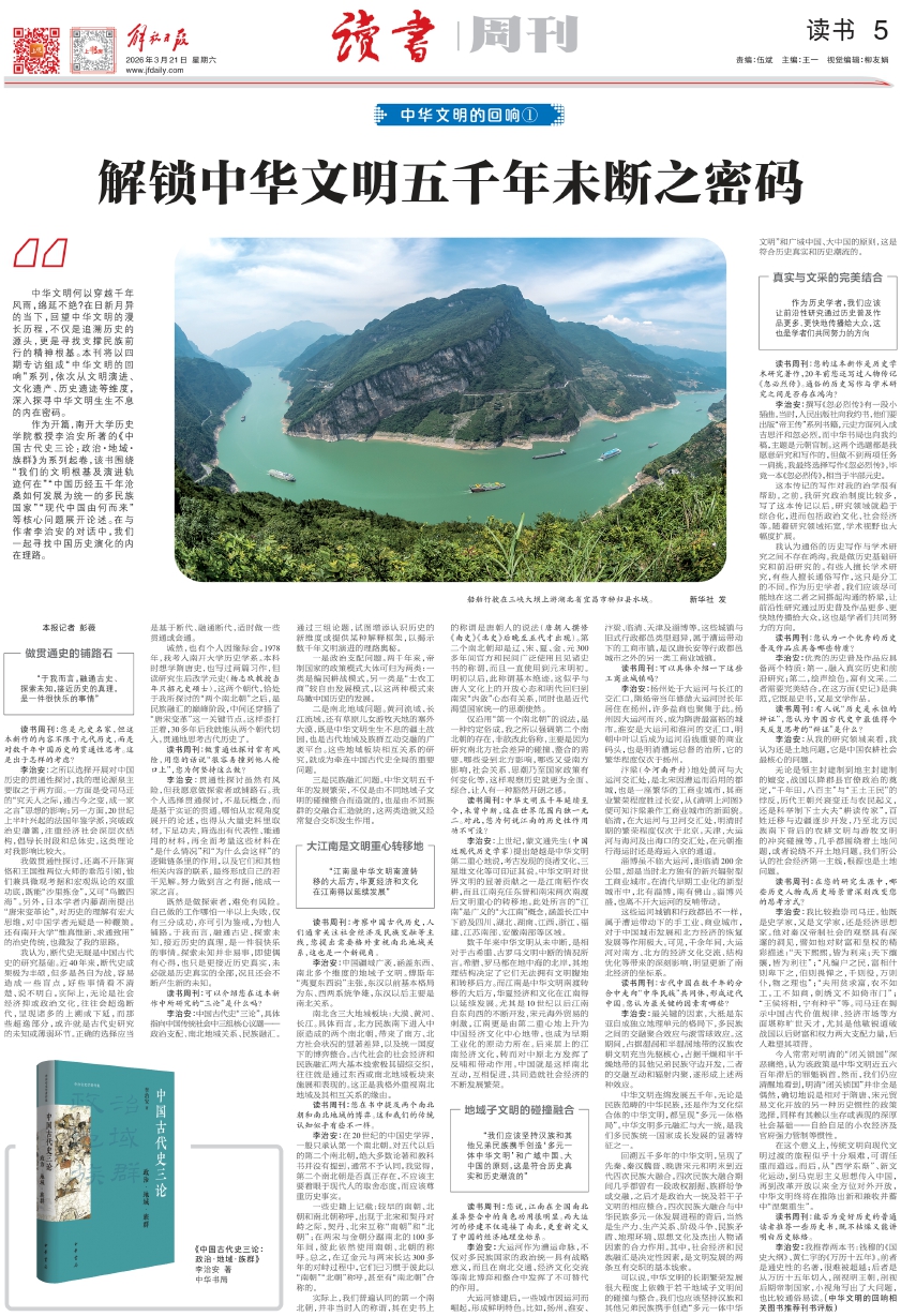 读书周刊:中华文明五千年延续至今,未曾中断,这在世界范围内独一无二。对此,您为何说江南的历史性作用功不可没?