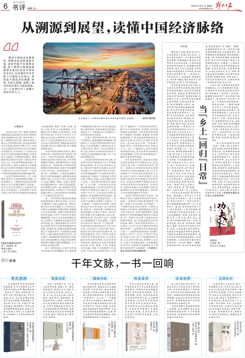 但小说仍有细节处的“失控”。仅举一例。文成初入富贵杂耍队时尚存复读考大学的念头,富贵教他练吞油吐火,书中写这个活计危险系数低但难度不小。后来文成考学梦碎,决心以卖艺为生,作者又借富贵之口说明吞油吐火的危险性——伤害身体,折损寿命。如若吞油吐火如后文所说会折损寿命,富贵为何让仍存考学之心的文成学习?这处连缀文成生命重要转折点的“扣子”,似乎没有扣紧。当然,于《功夫》这种体量的长篇小说寻细节的完全对应,未免有些苛责。从《春水流》到《功夫》,流水入湖,乡民的日常世界有了全景。(作者系中国矿业大学人文学院讲师)