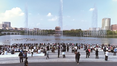 市民和游客在雄安新区金湖公园内游览(2025年10月3日摄,无人机照片)。 新华社发