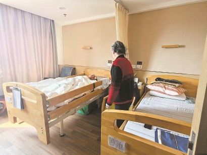 在一间双人间,记者遇到了来探望父母的赵女士。赵女士的父母都卧床,需要专人长期照护。“养老院双人间的配置很好。房门一关,感觉好像还是生活在家里。老两口不分开,在心理上相互慰藉。子女来探望与照护也方便。”