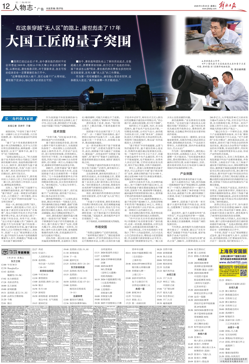 今年初,我国“十五五”规划纲要正式发布,量子科技被写入其中。这段时间,唐世彪和团队正忙着谋划和布局。开启下一段征程,他们更有信心了。