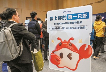 在全球开发者先锋大会现场,人们排队等待安装AI助手StepClaw。 视觉中国