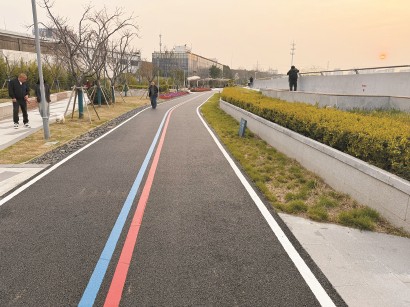 3月25日,记者在现场看到,该路段沥青铺设已完成,路面平整,通行顺畅。路面标线划设也已完成,标识清晰。傍晚时分,不少市民在绿道上慢跑、散步。